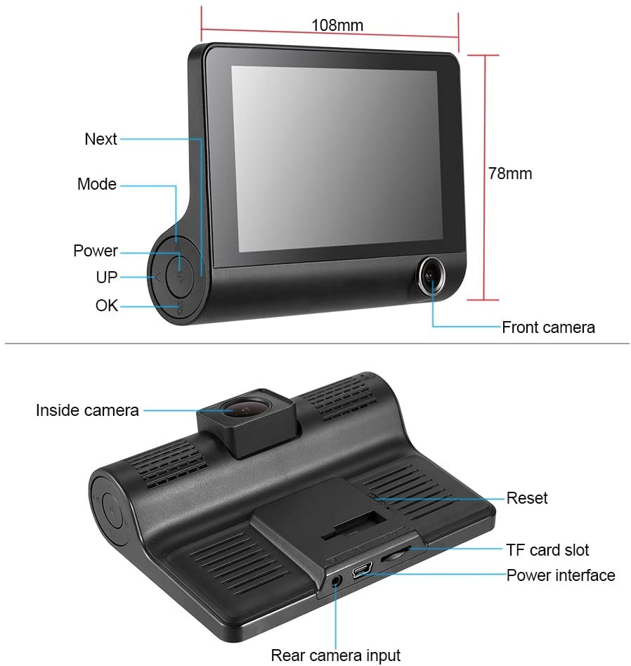 مسجل عالي الدقة 720 بالكامل مع 3 عدسات لرؤية ما يحدث داخل السيارة. يمكن اختيار أوضاع عرض الشاشة المختلفة، تسجيل مزدوج قبل وبعد ذلك، نفس السجل داخل السيارة وخارجها، جودة عالية عالية كبيرة واسعة الزاوية وعرض واسع، والقيادة أكثر أمانًا.