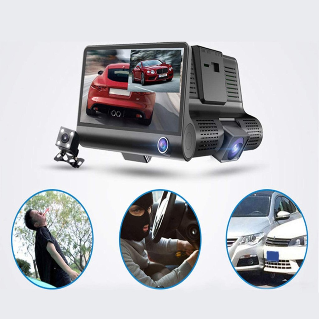 1- كاميرا DVR من BAGGRA 4. 0 في 3 اتجاهات عدسة فيديو تسجيل الرؤية الخلفية للسيارة مع 2 كاميرا داش كام دي في آر اس كارفيديو الرؤية الليلية لرؤية وقوف السيارات