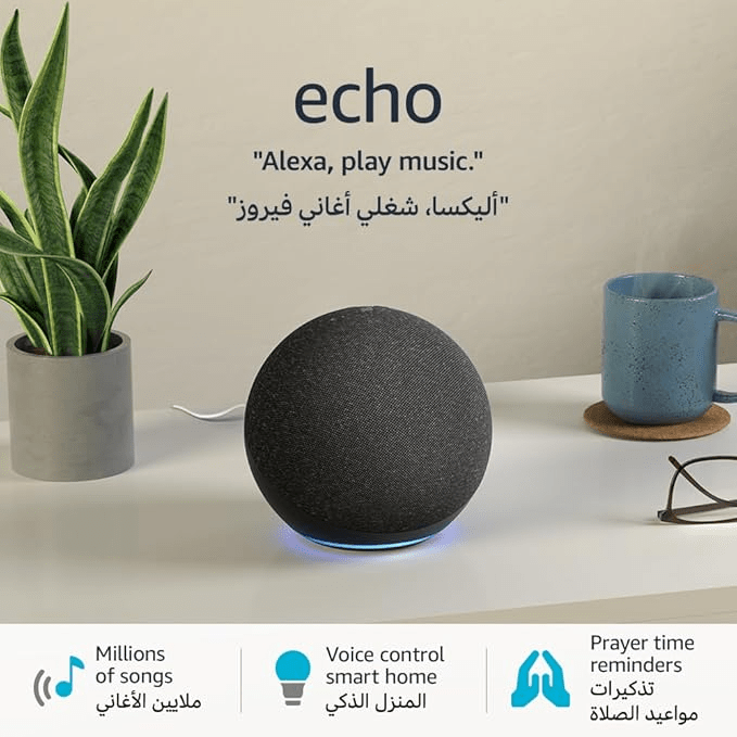 Echo (الجيل الرابع) ليست مجرد سماعة ذكية، بل هي مركز تحكم متكامل لمنزلك الذكي. سواء كنت تريد التحكم في الأجهزة، الاستماع إلى القرآن، أو حتى الحصول على تحديثات الطقس والأخبار، فإن Echo تجعل كل ذلك ممكنًا بصوتك فقط.