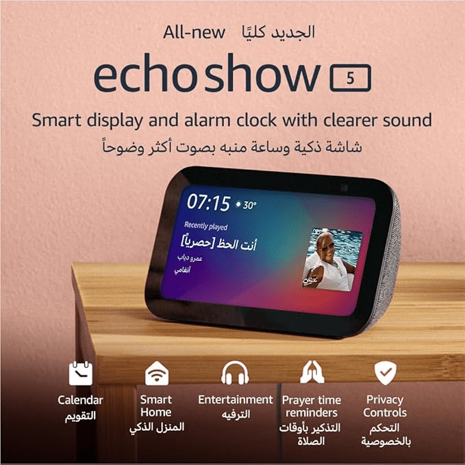 Echo Show 5 (الجيل الثالث) هي أكثر من مجرد شاشة ذكية؛ إنها مركز تحكم متكامل لمنزلك الذكي. سواء كنت تريد التحكم في الأجهزة، مشاهدة الفيديوهات، أو حتى الاستماع إلى القرآن، فإن Echo Show 5 تجعل كل ذلك ممكنًا بلمسة أو بصوتك فقط.
